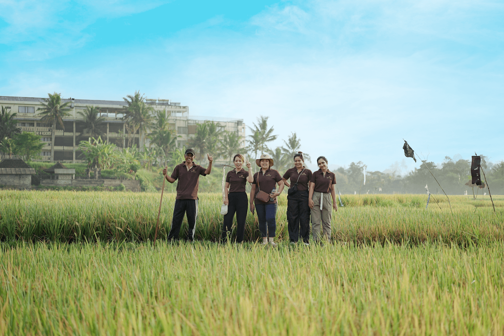 A refreshing walk through a rice field can be a serene and rejuvenating experience. Picture lush green terraces stretching out under a bright blue sky,